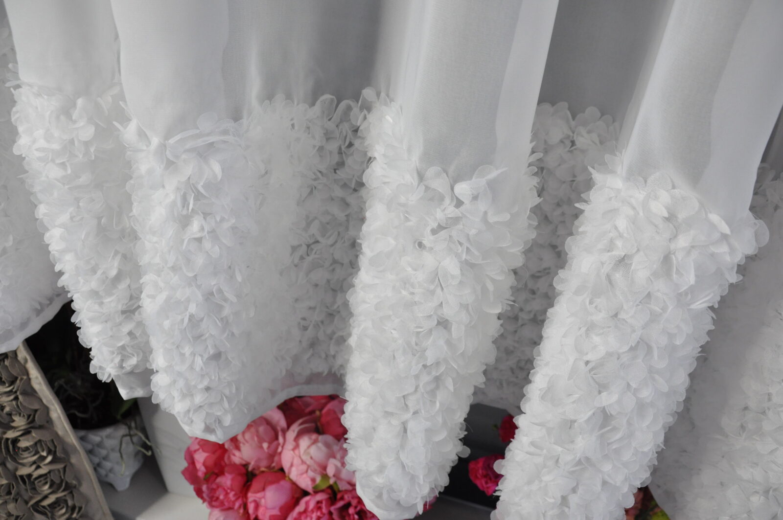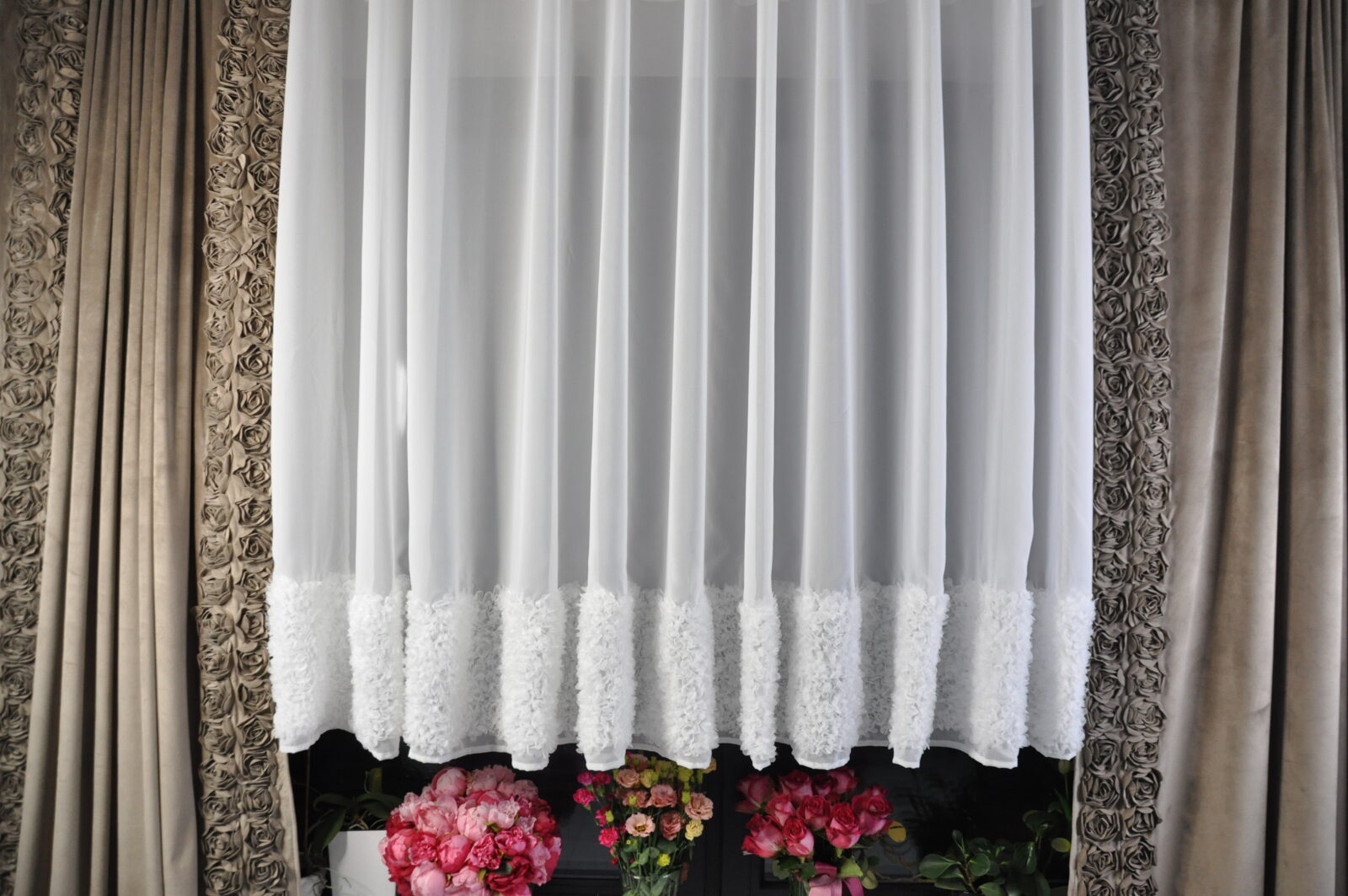Wprowadź do swojego wnętrza subtelną elegancję dzięki lekkiej firanie z delikatnego szyfonu, wyróżniającej się efektownym, trójwymiarowym wykończeniem u dołu. To połączenie zwiewnej tkaniny z dekoracyjną aplikacją nadaje aranżacji okna wyjątkowy, nowoczesny charakter.