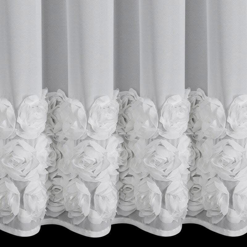 Firana szyfonowa z kolekcji ROSES | NOWOŚĆ | 500×250 cm taśma | zdobiona aplikacją 3D w róże