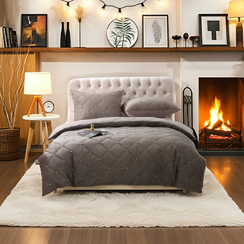 Miękka, welurowa, lekko pikowana NARZUTA DIAMOND otuli łóżko zapewniając ład i estetyczny wygląd Twojej sypialni. Powierzchnię zdobią delikatne diamenty. Wierzch narzuty wykonany jest z welwetowej tkaniny, natomiast spód z matowej tkaniny, która zapobiega zsuwaniu się narzuty z pościeli.