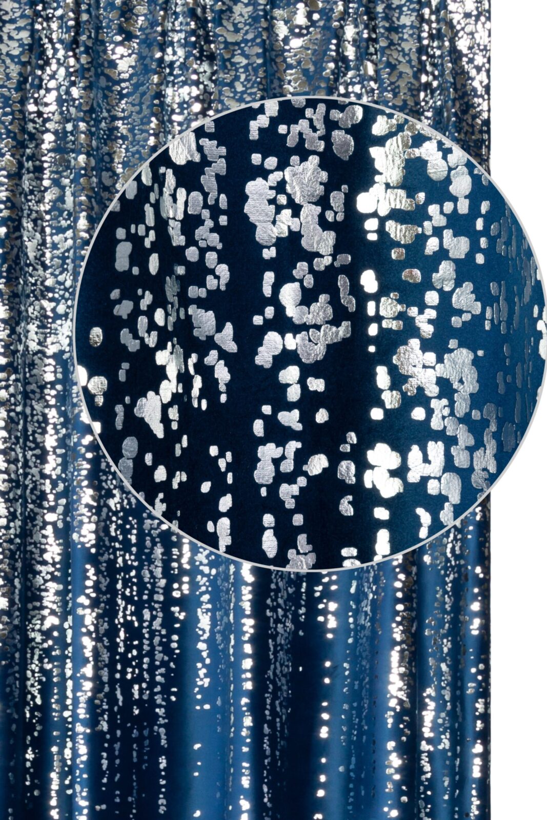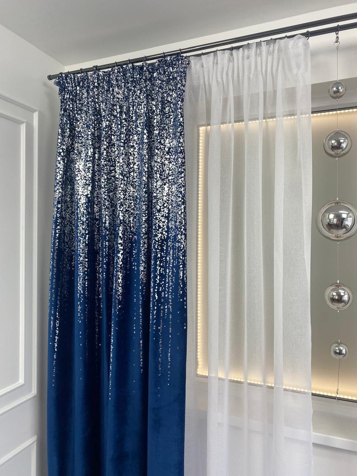 To, co je wyróżnia, to delikatna, srebrna aplikacja, która niczym spływający deszcz światła ozdabia tkaninę, tworząc efekt wysmakowanego glamour. Zasłony pięknie odbijają światło dzienne i wieczorne, nadając pomieszczeniom wyjątkowy klimat i elegancję.