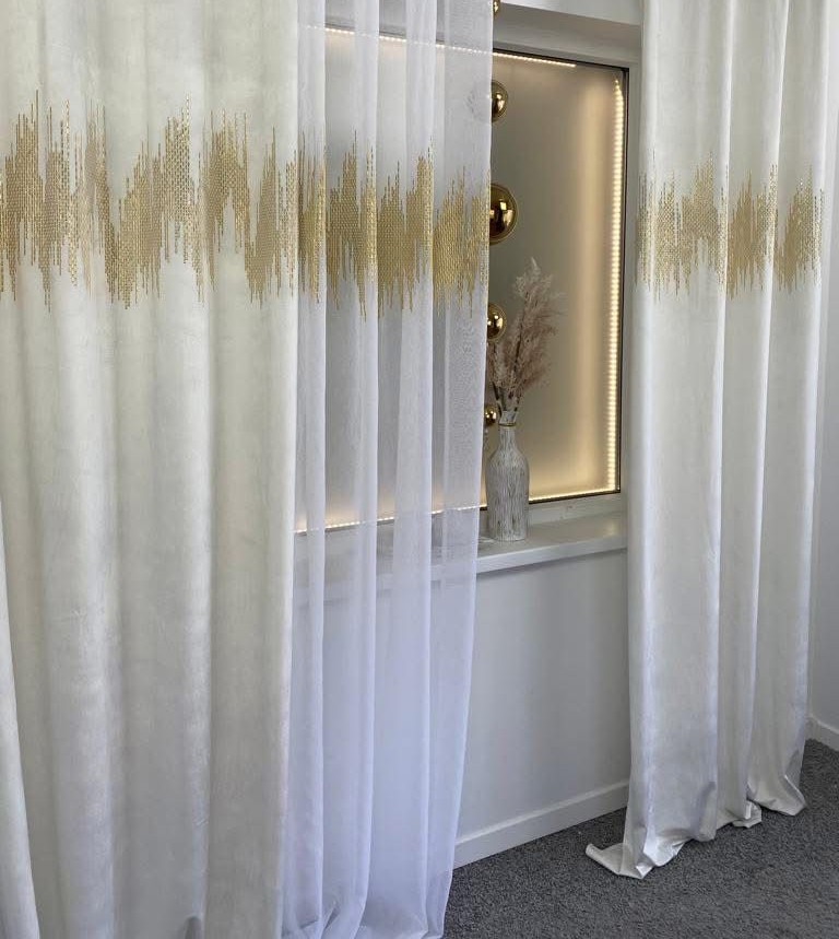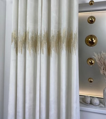 Zasłona wykonana została z wysokiej jakości, miękkiego i mięsistego weluru, który pięknie układa się w fale i subtelnie odbija światło, tworząc efekt głębi i luksusu. Dzięki aksamitnej strukturze tkanina wprowadza do pomieszczenia przytulną atmosferę i elegancki blask.